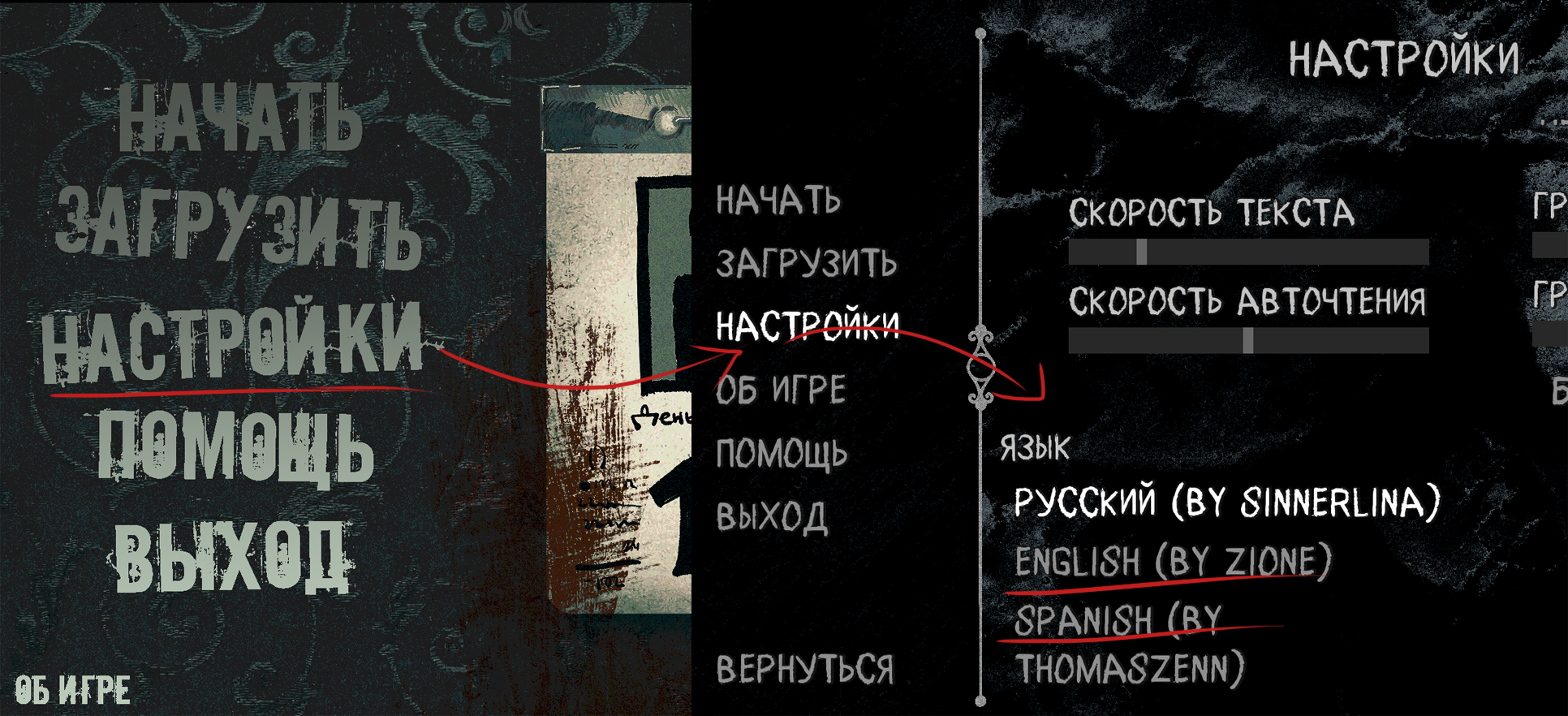 If you want to change language, you need to open Settings (Настройки) and select preffered translation (Russian, English, Spanish)